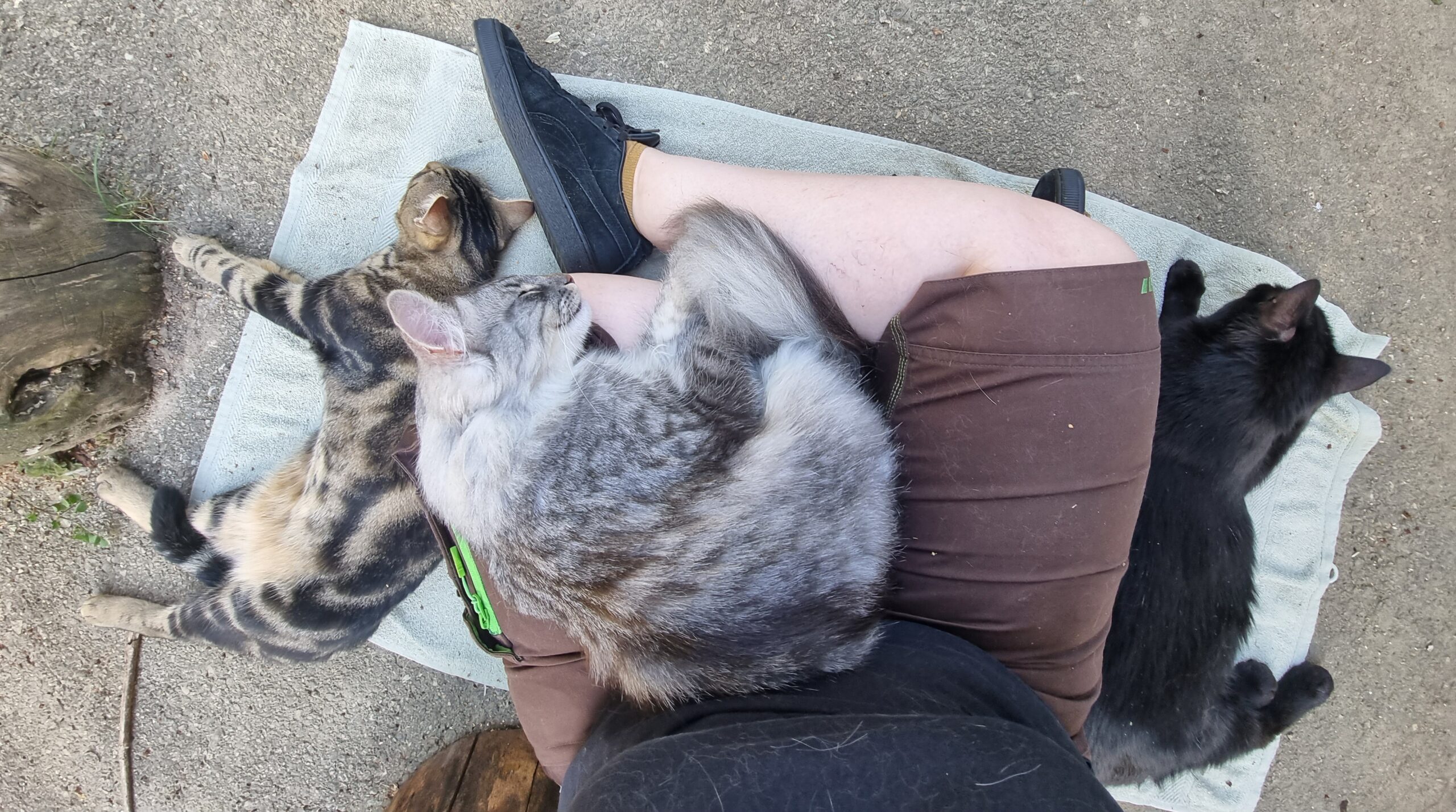 Vous nous reconnaîtrez facilement : un chat pataud et sociable jamais très loin de sa gardienne attentionnée.